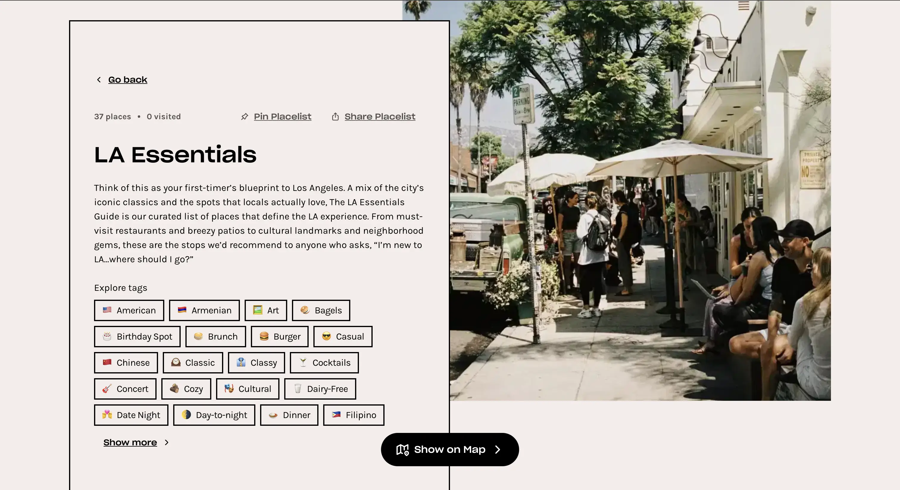 Platform with places to go in LA, knowing all the cool spots and hidden gems.